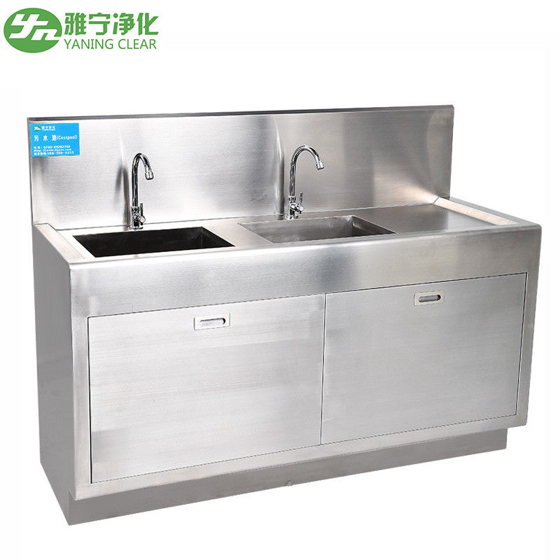 All stainless steel tank body, seamless design, easy to clean; Infrared sensing water system is equipped with medical faucets, not waste water resources; The automatic soap / detergent feeder is convenient and sanitary; Luxury stainless steel backplane maintain the overall effect (standard type); According to customer requirements , can configure the water heater, hand dryer Water way: infrared sensing type, knee touch type, pedal type, are optional |